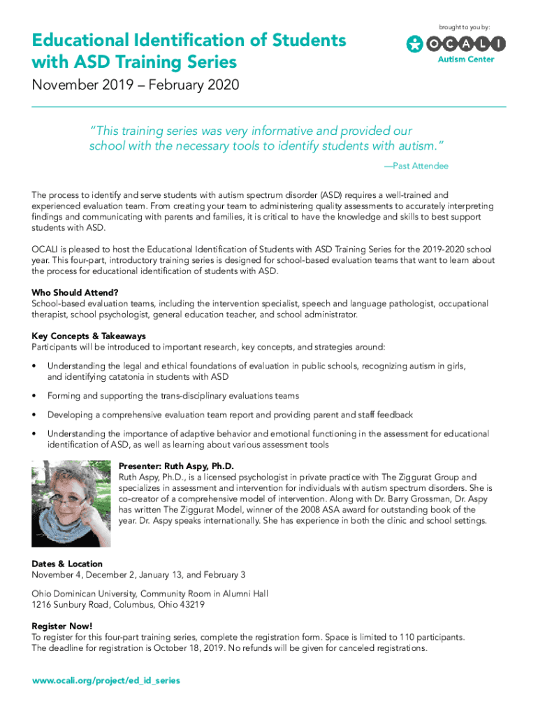 Brought to you by:Educational Identification of Students with ASD Training Series November 2019 February 2020This training series was very informative and provided our school with the necessary tools
