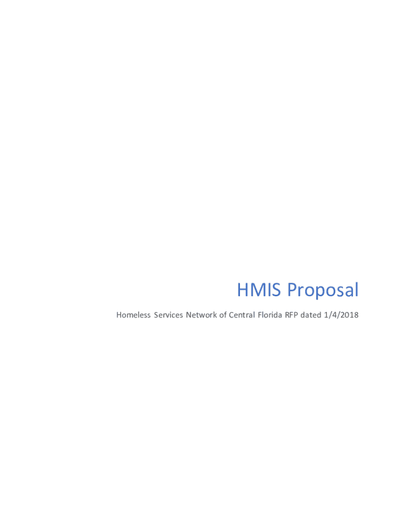 Get the free HMIS Proposal - Homeless Services Network of Central Florida