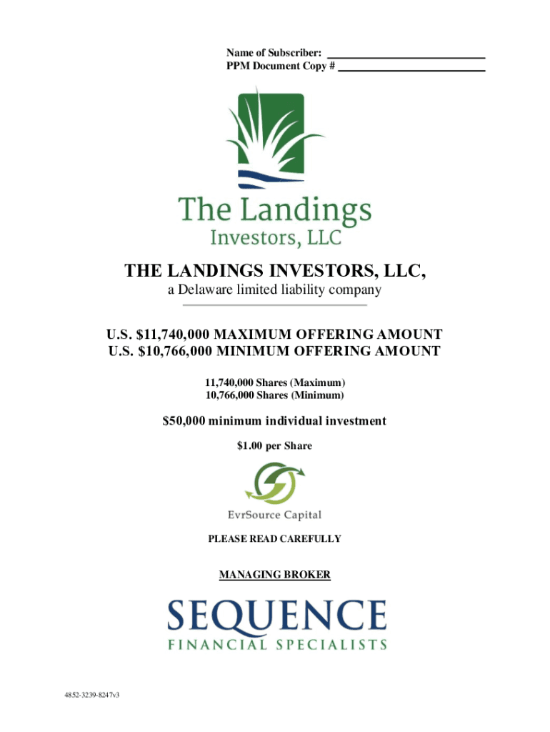 Name of Subscriber: PPM Document Copy #THE LANDINGS INVESTORS, LLC, a Delaware limited liability company U.S. $11,740,000 MAXIMUM OFFERING AMOUNT U.S. $10,766,000 MINIMUM OFFERING AMOUNT 11,740,000