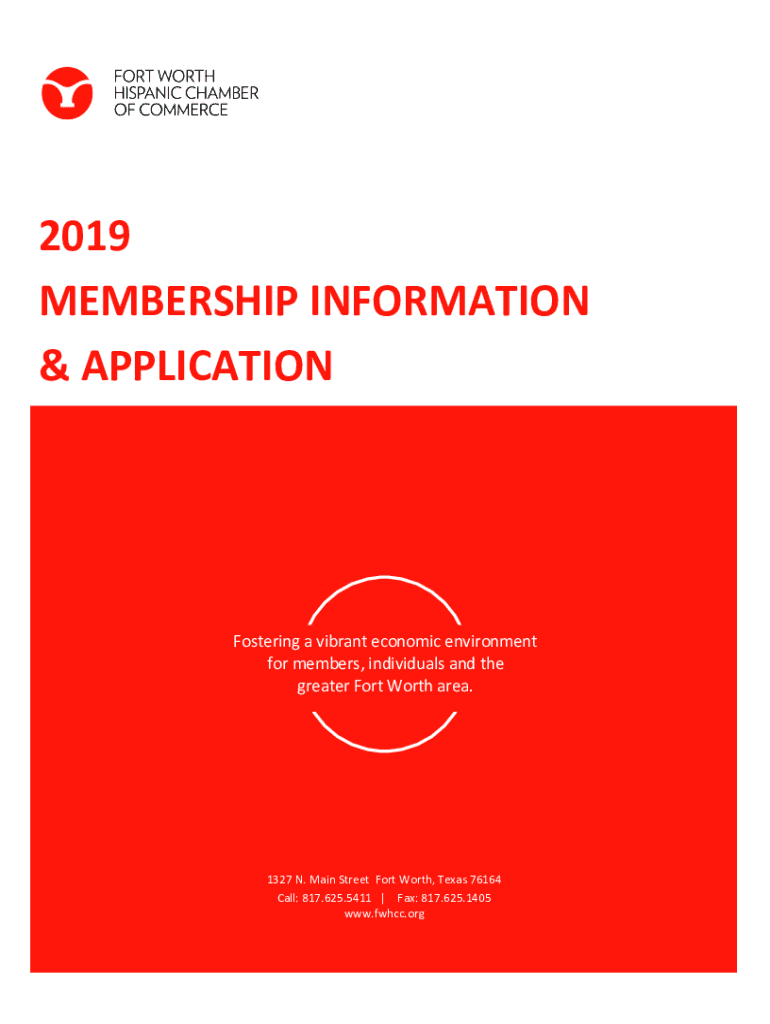 2019 MEMBERSHIP INFORMATION & APPLICATIONFostering a vibrant economic environment for members, individuals and the greater Fort Worth area.1327 N. Main Street Fort Worth, Texas 76164 Call: 817.625.5411