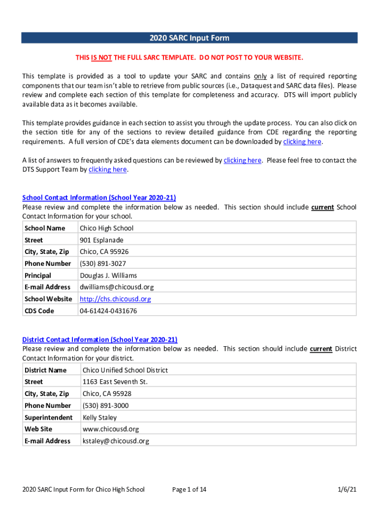 2020 ARC Input Form THIS IS NOT THE FULLS ARC TEMPLATE. DO NOT POST TO YOUR WEBSITE. This template is provided as a tool to update your ARC and contains only a list of required reporting components