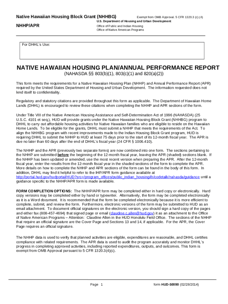 Instructions for the form NATIVE HAWAIIAN HOUSING PLAN/ANNUAL PERANCE REPORT