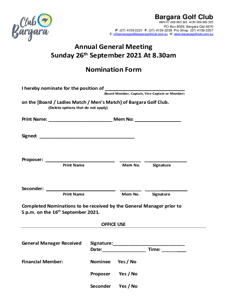 Get the free Nominations for Website - Bargara Golf Course