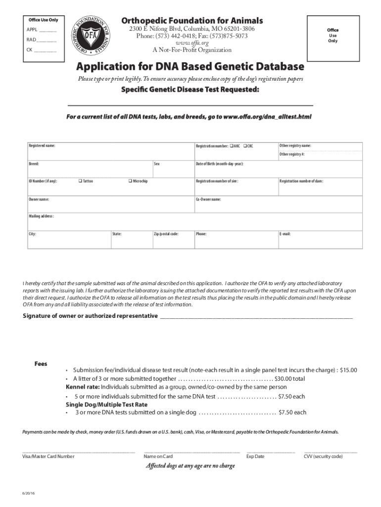 Get the free Application for 0' Orthopedic Foundation for Animals ...