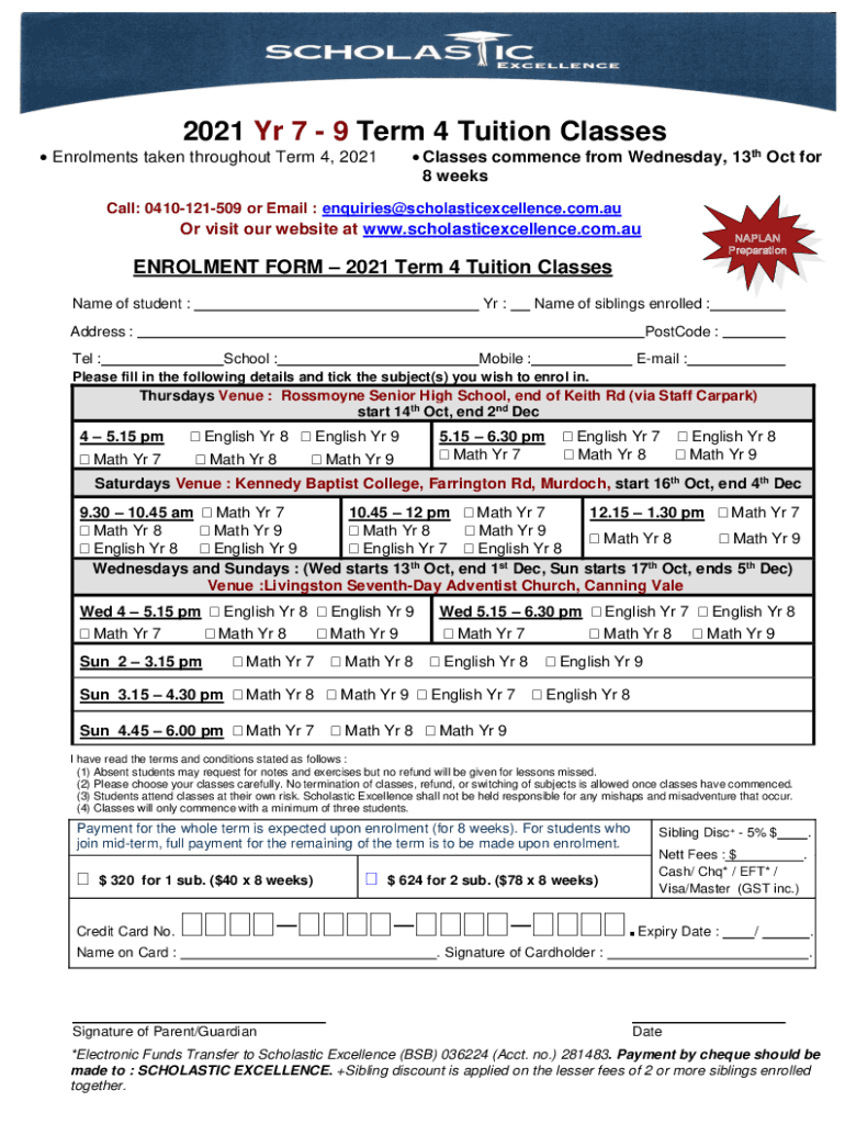 2021 Yr 7 9 Term 4 Tuition Classes Enrollments taken throughout Term 4, 2021 Classes commence from Wednesday, 13th Oct for 8 weeksCall: 0410121509 or Email : enquiries@scholasticexcellence.com.auOr