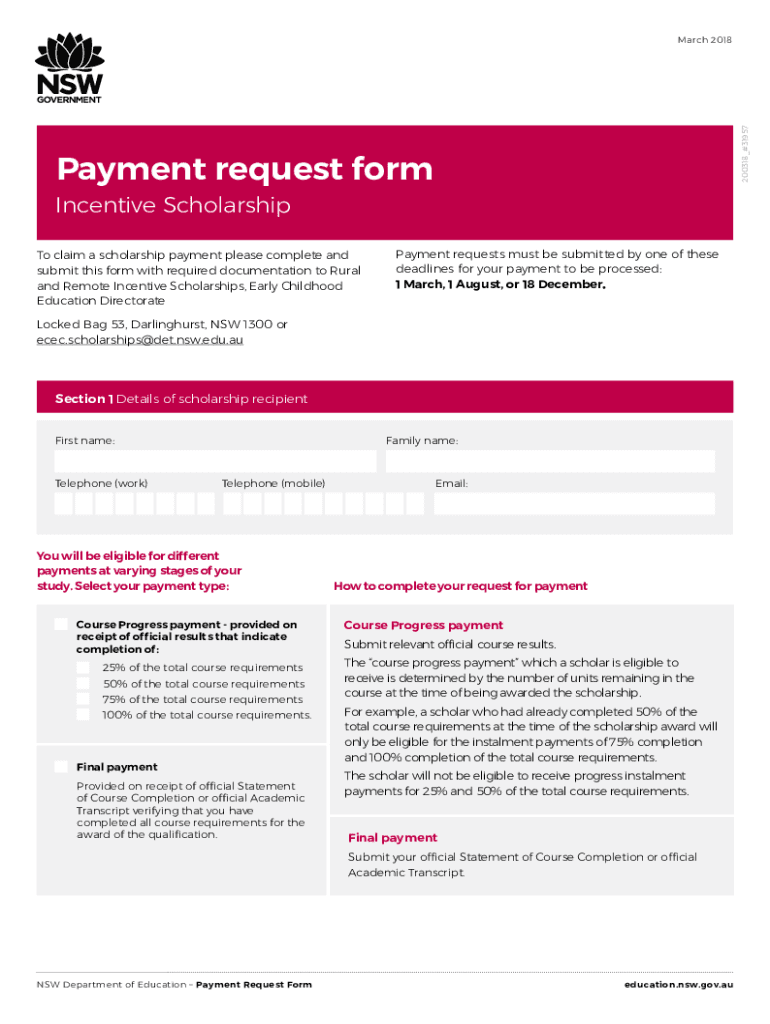 Get the free Payment Request Form - Incentive Scholarships. scholarship payment