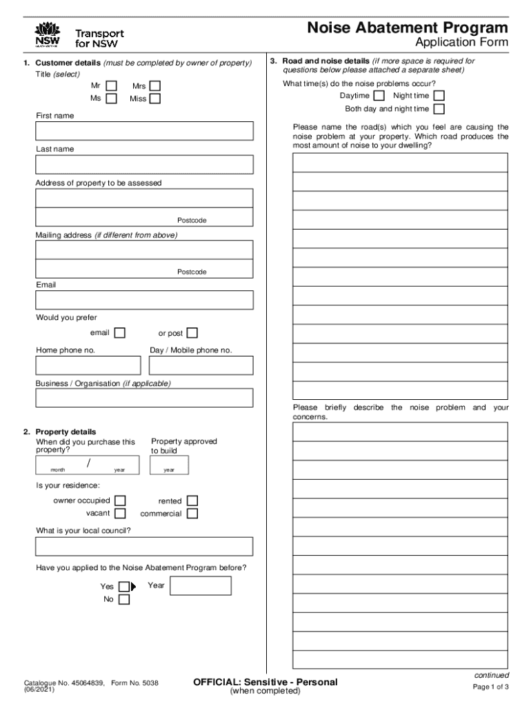 Noise Abatement Program Application Form 1. Customer details (must be completed by owner of property) Title (select) MrMrsMsMiss3. Road and noise details (if more space is required for questions below