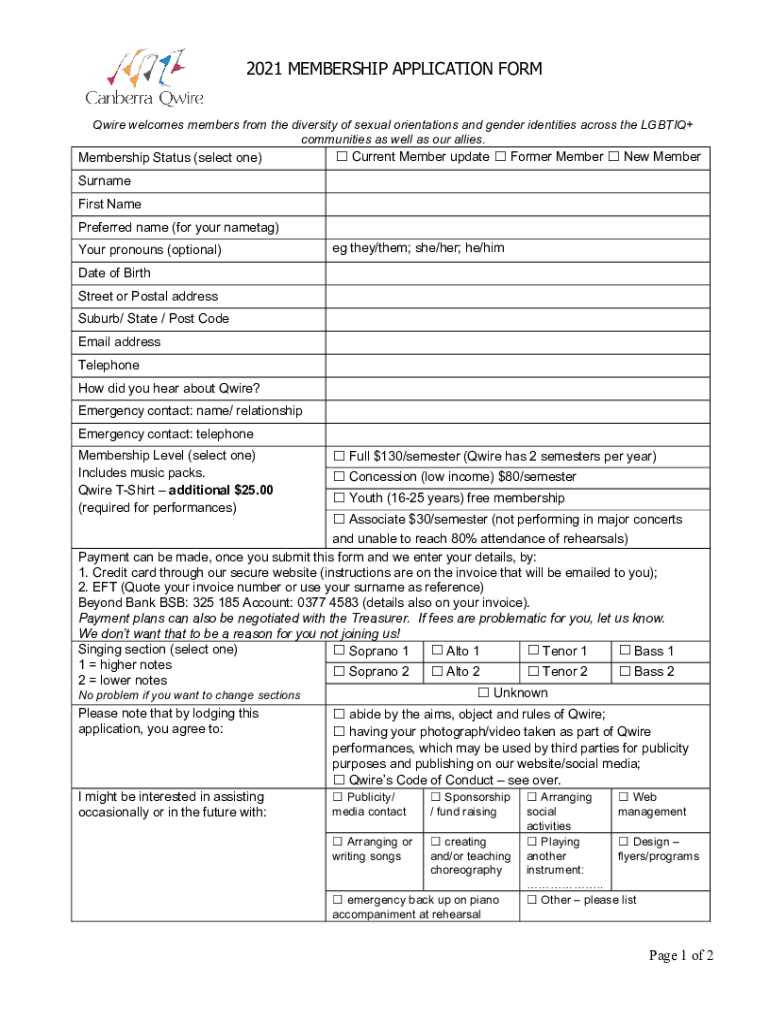 2021 MEMBERSHIP APPLICATION FORM Wire welcomes members from the diversity of sexual orientations and gender identities across the LGBT IQ+ communities as well as our allies. Current Member update