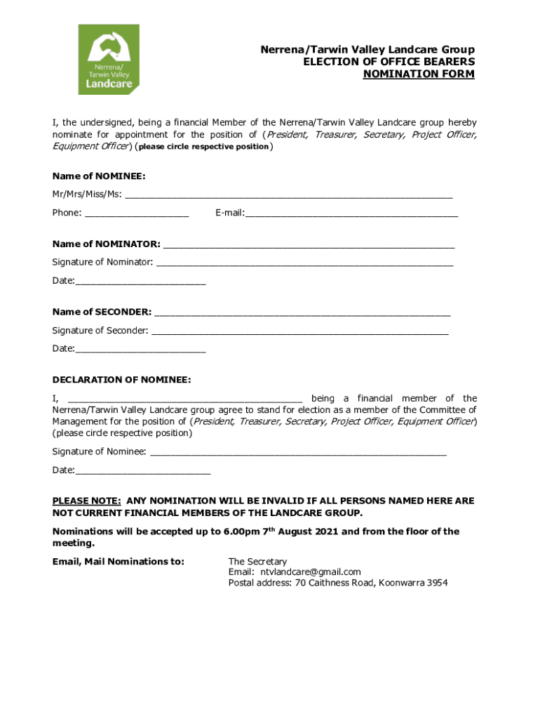 Once all necessary steps are completed, you will become a member of the Nerrenatarwin Valley Landcare Group.