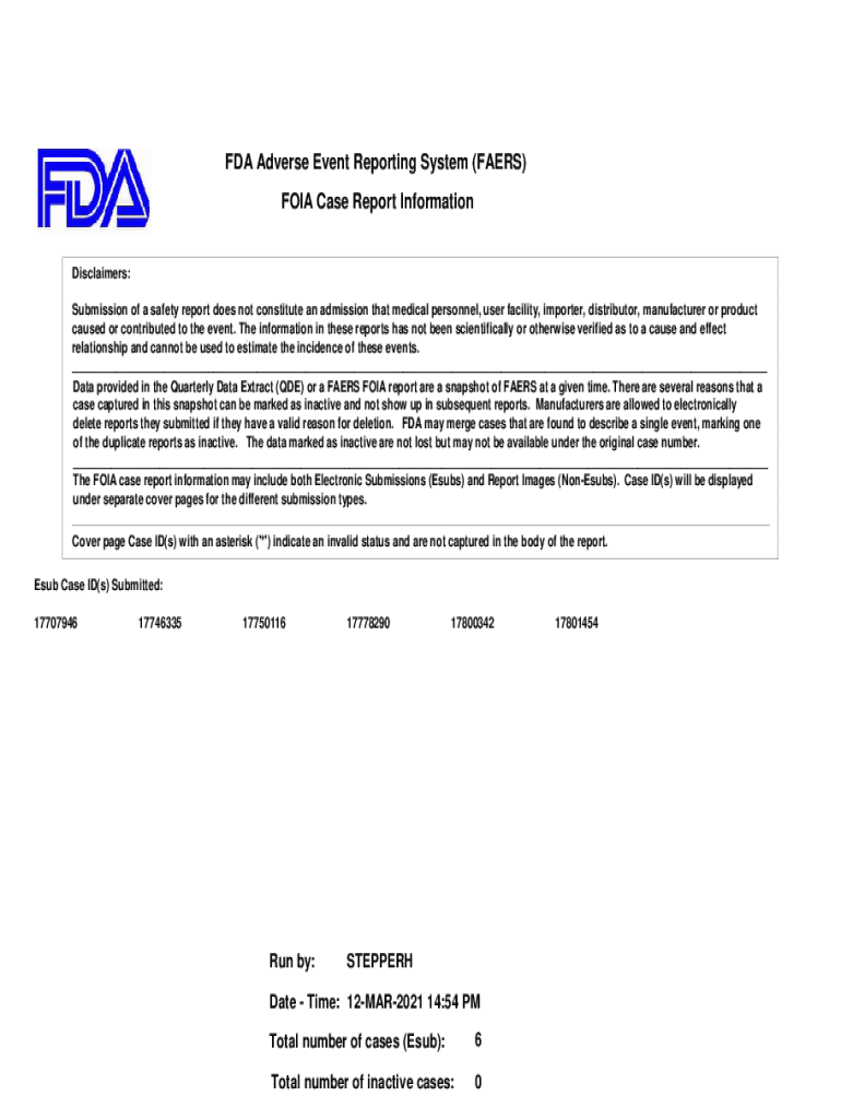 Get the free FDA Adverse Event Reporting System Freedom of Information ...
