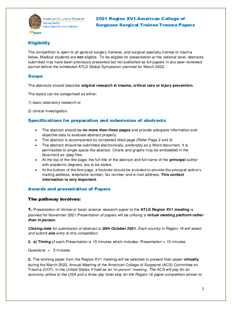 Get the free Trauma Papers Competition - American College of Surgeons