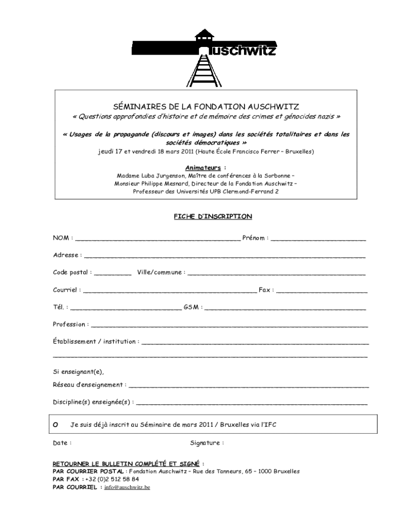 LUMINAIRES DE LA FOUNDATION AUSCHWITZ Questions approfondies history et de moiré DES crime set genocides Nazis Usages DE la propaganda (discourse ET images) days LES soc its totalities ET days LES