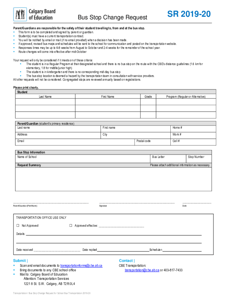 Get the free Bus Stop Change Request - Calgary Board of Education