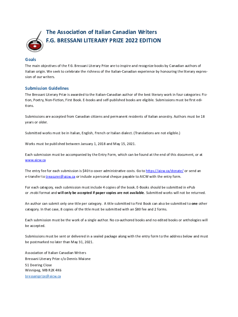 The main object VES of the F.G. Pressing Literary Prize are to inspire and recognize books by Canadian authors of Italian origin. We seek to celebrate the richness of the Italian Canadian experience