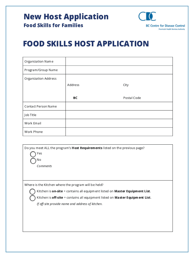 New Host Application Food Skills for FamiliesThis document package contains: Host Requirements Equipment List New Host Application Formic you work for an organization interested in hosting a Food