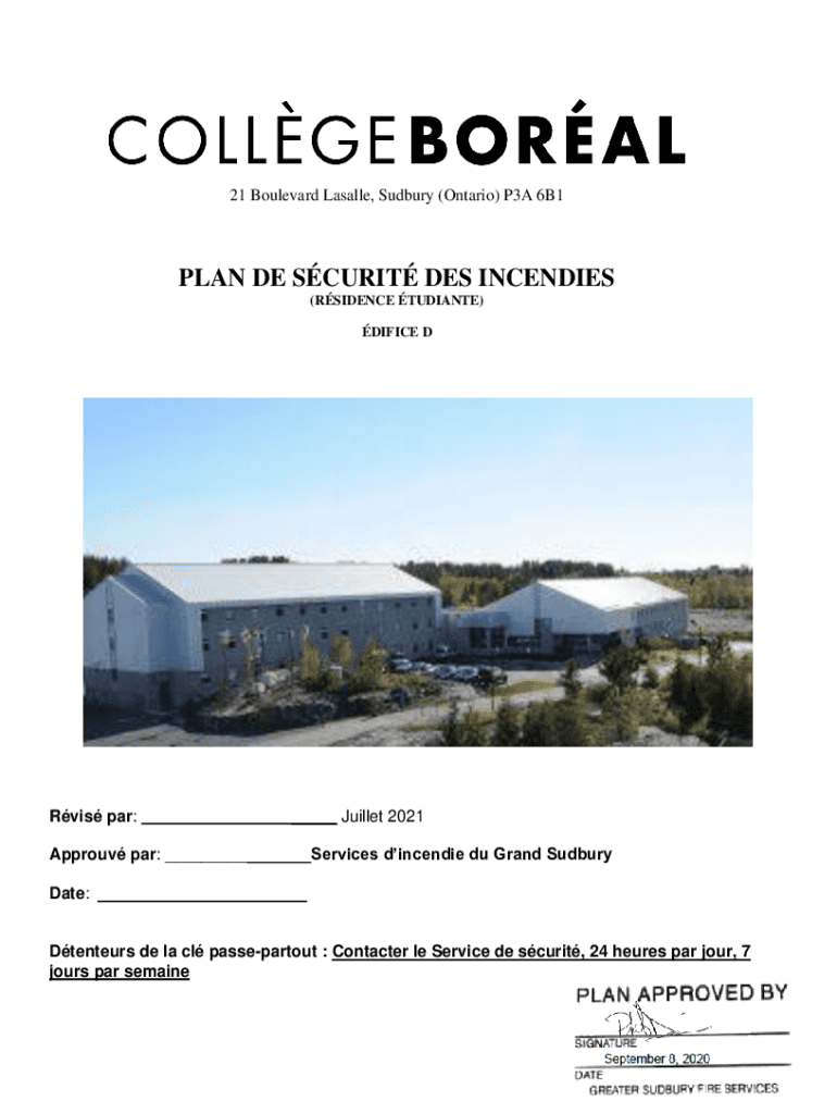 21 Boulevard Basally, Sudbury (Ontario) P3A 6B1PLAN DE SECURITY DES INCENTIVES (RESIDENCE AUDIENCE) EDIFICE Davis par: Bullet 2021Approuv par: Services incentive Du Grand Sudbury Date: Centers DE
