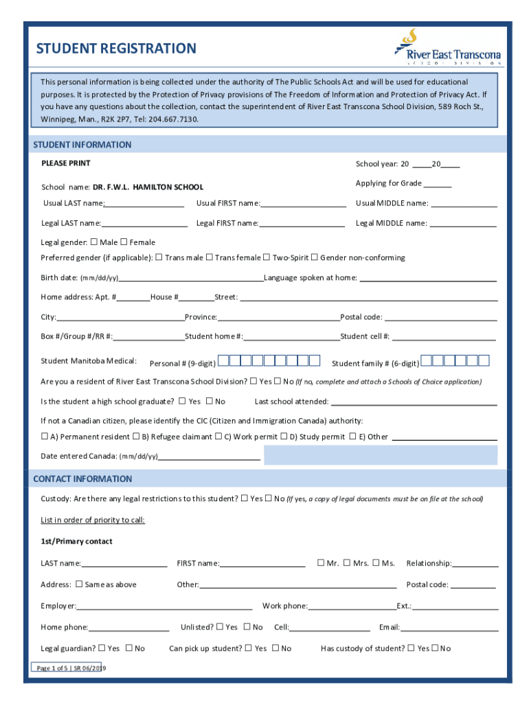 STUDENT REGISTRATION This personal information is being collected under the authority of The Public Schools Act and will be used for educational purposes. It is protected by the Protection of Privacy