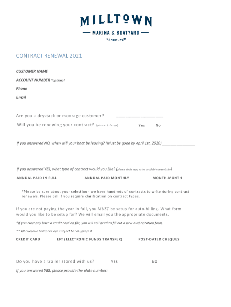 CONTRACT RENEWAL 2021 CUSTOMER NAME ACCOUNT NUMBER *optional Phone Email you a dry stack or moo rage customer? Will you be renewing your contract? (please circle one)Lenoir you answered NO, when will