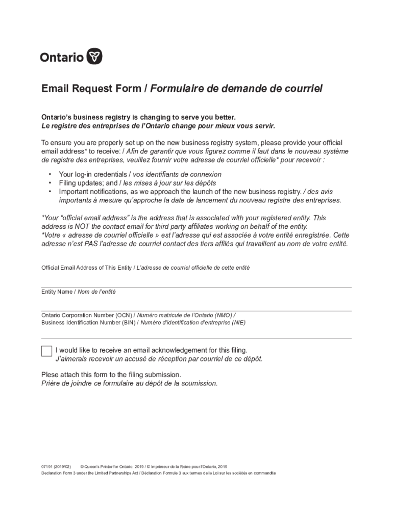 Email Request Form / Formula ire DE demand DE courier Ontario's business registry is changing to serve you better. Le register DES enterprises de Ontario change pour moon vows server. To ensure you