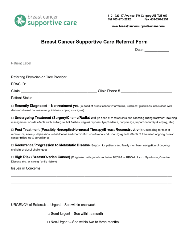 Get the free Breast Cancer Supportive Care Referral Form.pdf