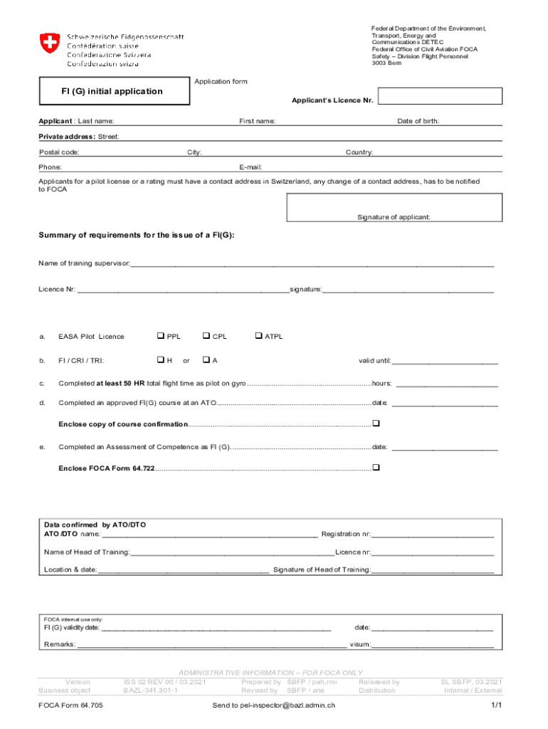 Federal Department of the Environment, Transport, Energy and Communications DETECT Federal Office of Civil Aviation FOCAL Safety Division Flight Personnel 3003 Reapplication form FI (G) initial application