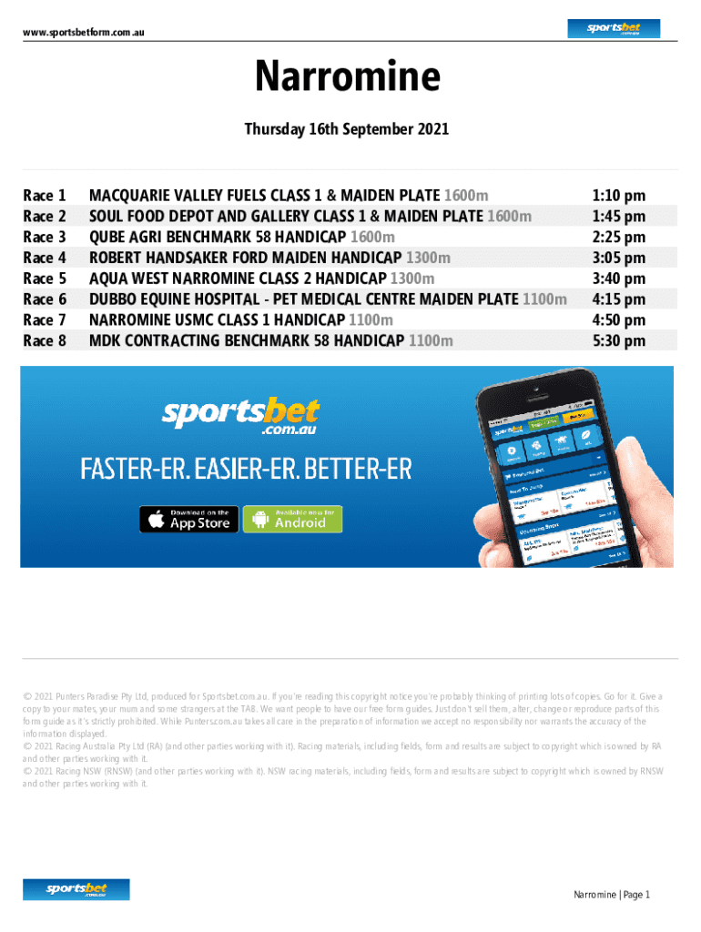 Get the free Narromine Form Guide - Thursday 16th September 2021