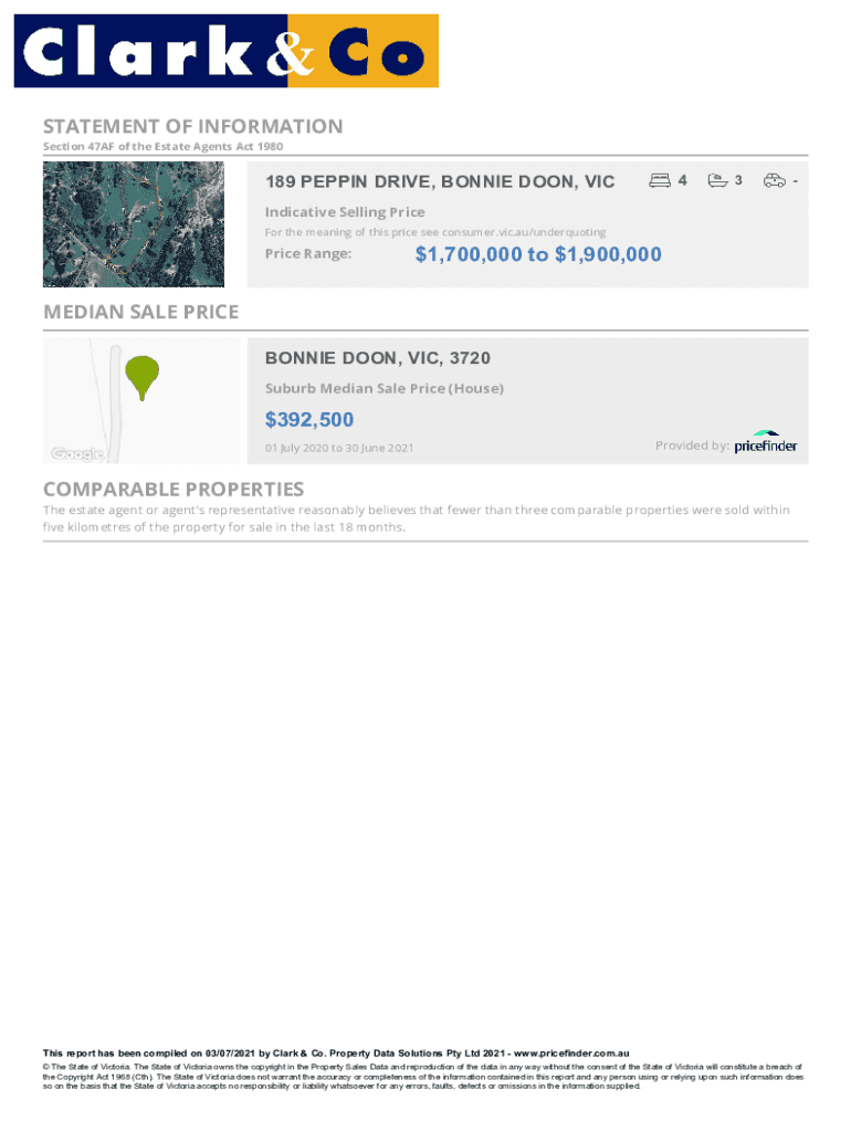 STATEMENT OF INFORMATION Section 47AF of the Estate Agents Act 19804189 PIPPIN DRIVE, BONNIE DOWN, VIC3Indicative Selling Price For the meaning of this price see consumer.vic.au/underquotingPrice