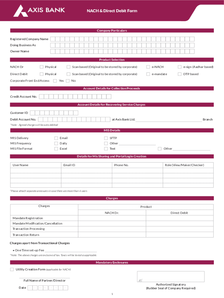 Financial institutions and companies offering products under the NACH system are required to file the nach product annexure form.