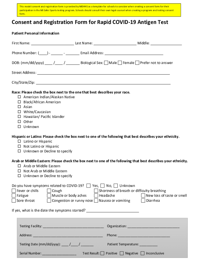 Get the free Registration and Consent Form for Rapid COVID-19 Antigen ...