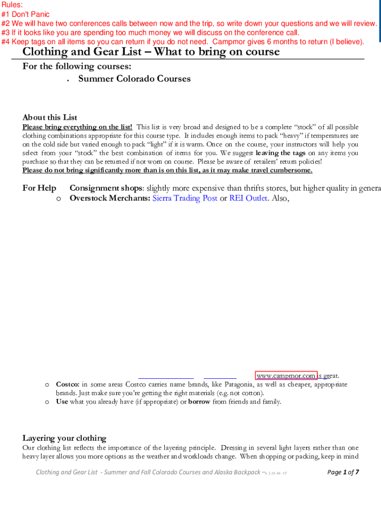 Rules: #1 Don\'t Panic #2 We will have two conferences calls between now and the trip, so write down your questions, and we will review. #3 If it looks like you are spending too much money we will
