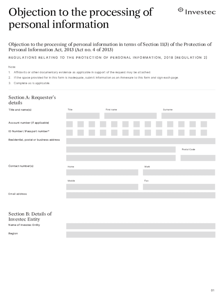 Objection to the processing of personal information Objection to the processing of personal information in terms of Section 11(3) of the Protection of Personal Information Act, 2013 (Act no. 4 of