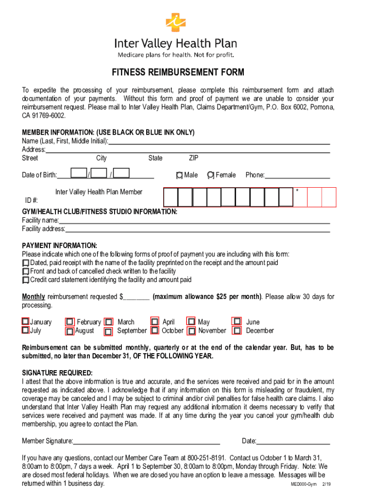 Submit by EmailFITNESS REIMBURSEMENT FORM How to Get Your $25 Fitness Reimbursement As an Inter Valley Health Plan Service To Seniors (HMO) member, you can get up to $25 each month toward your monthly