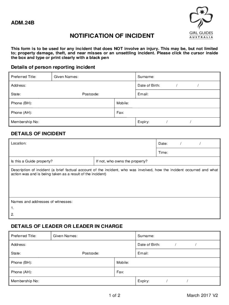 Get the free NOTIFICATION OF INCIDENT - Girl Guides NSW, ACT & NT