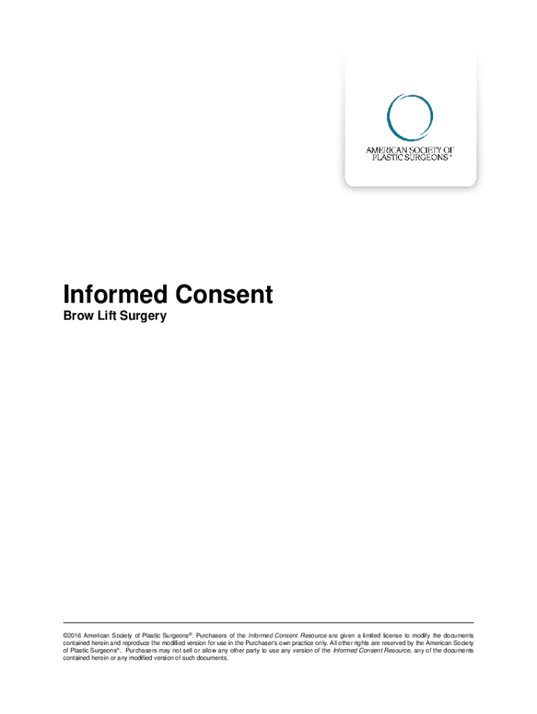 Informed Consent Brow Lift Surgery2016 American Society of Plastic Surgeons. Purchasers of the Informed Consent Resource are given a limited license to modify the documents contained herein and reproduce