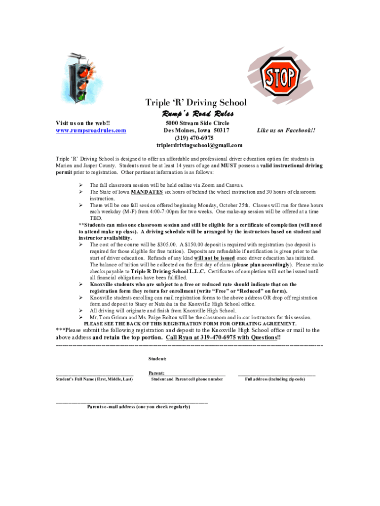 Get the free Triple R Driving School fall registration form 2021 - Knoxville.docx