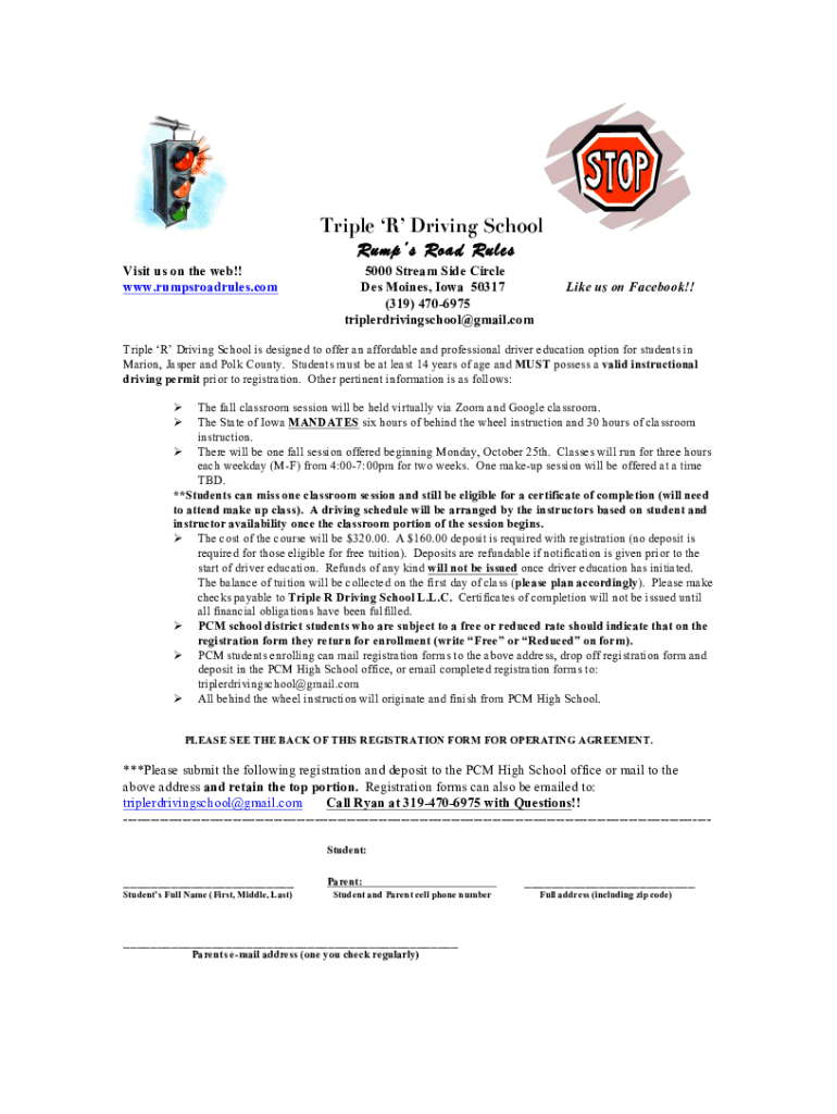 Get the free Triple R Driving School fall registration form 2021 - PCM.docx