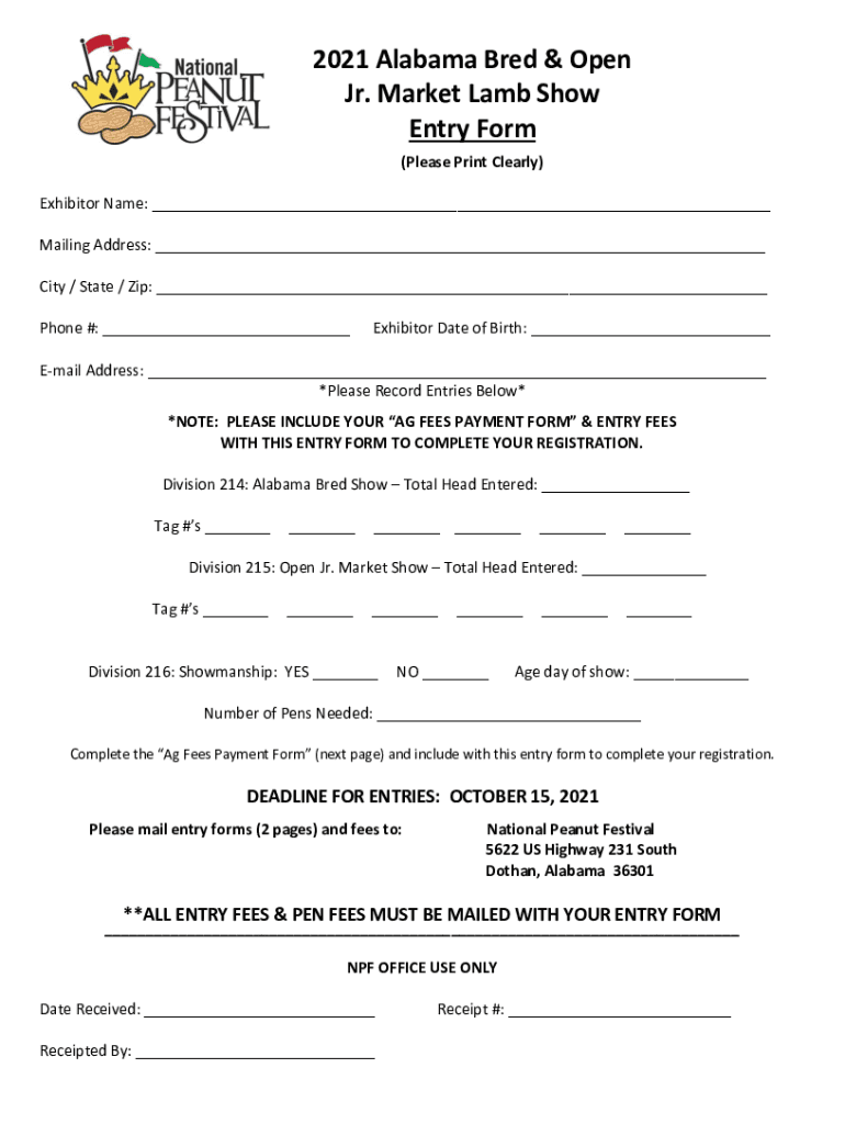ALABAMA BRED & OPEN JR. MARKET LAMB SHOWS ALABAMA BRED SHOW Friday, November 5, 2021, at 7:00 PM Department Chairmen Corner Peacock (334) 7143384 Lee Günter (334) 8946321ALABAMA BRED SHOW RULES 1.