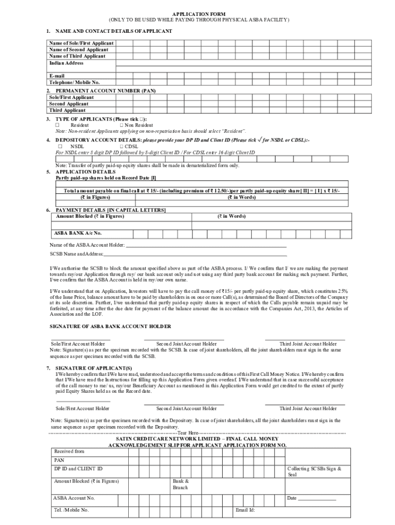 APPLICATION FORM (ONLY TO BE USED WHILE PAYING THROUGH PHYSICAL ASIA FACILITY) 1.NAME AND CONTACT DETAILS OF APPLICANTName of Sole/First Applicant Name of Second Applicant Name of Third Applicant