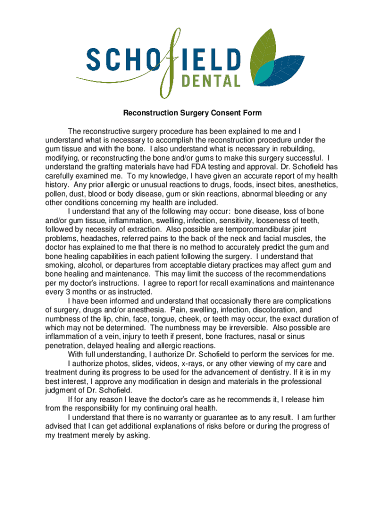 Reconstruction Surgery Consent Form The reconstructive surgery procedure has been explained to me and I understand what is necessary to accomplish the reconstruction procedure under the gum tissue