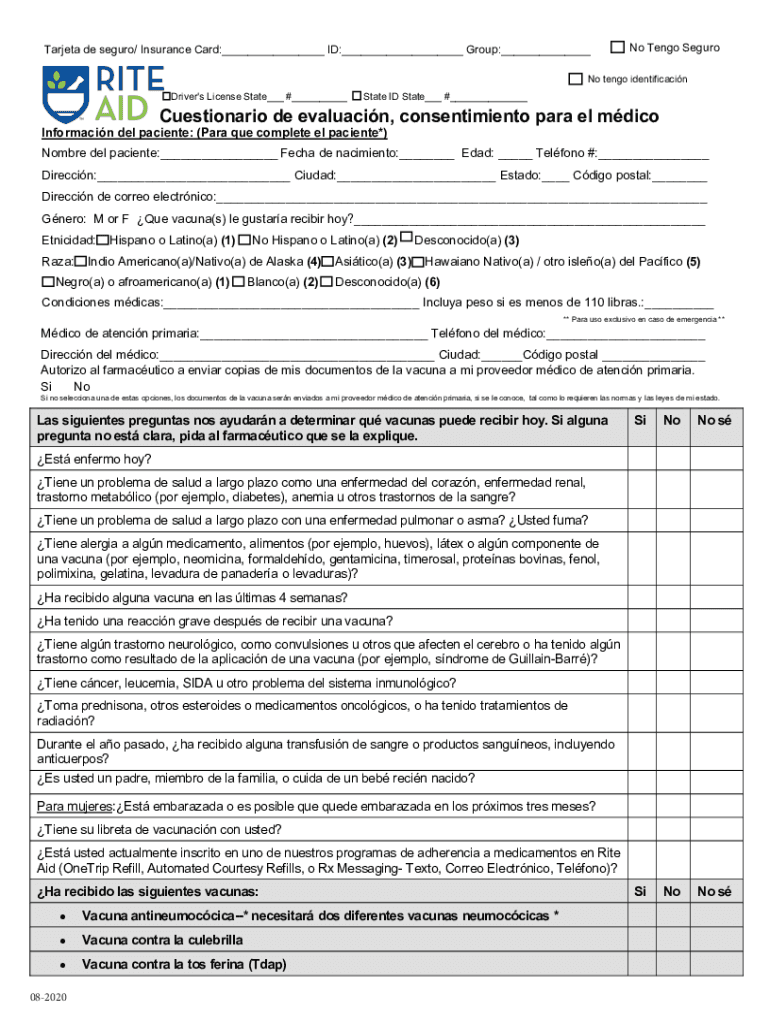 Target de Segura/ Insurance Card: ID: Group: No Tango Neurons tango identification Driver's License State # State ID State # Cuestionario de evaluation, consentimiento para el mdicoInformacin Del