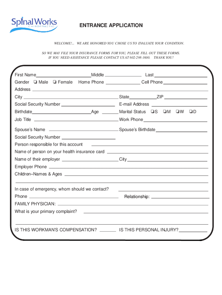 ENTRANCE APPLICATION We realize your time is valuable to you, so in order to lessen your time in our office please complete this set of health information forms prior to your first visit. The PDF