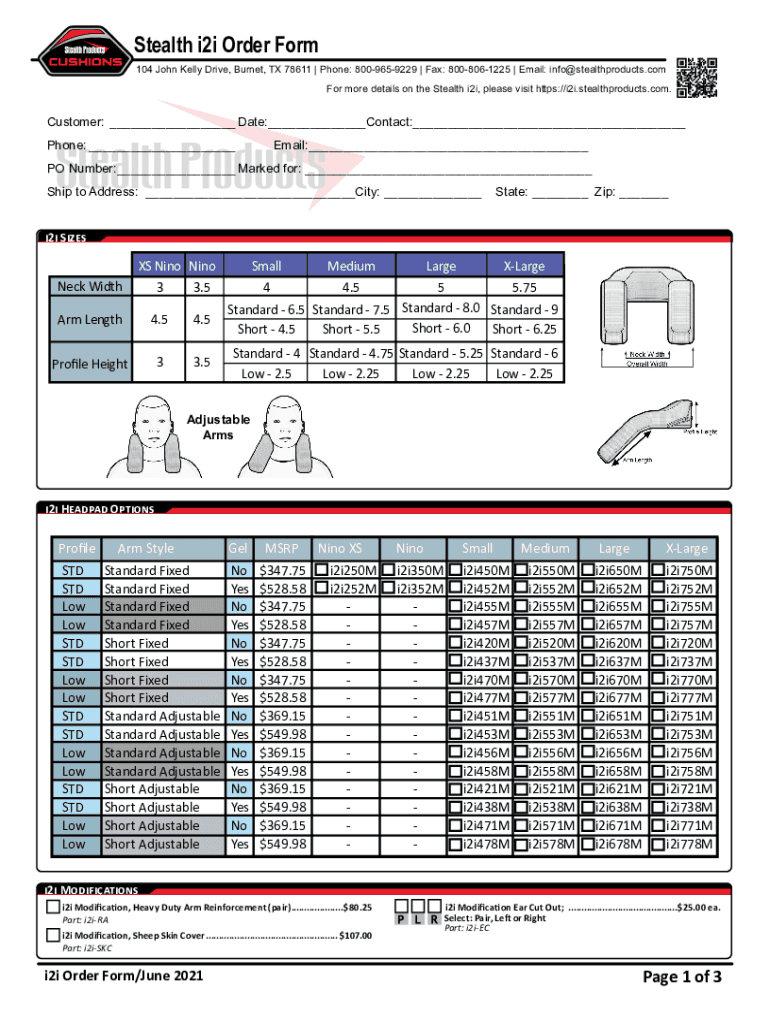 Stealth i2i Order Form 104 John Kelly Drive, Burned, TX 78611 Phone: 8009659229 Fax: 8008061225 Email: info stealthproducts.com For more details on the Stealth i2i, please visit https://i2i.stealthproducts.com.