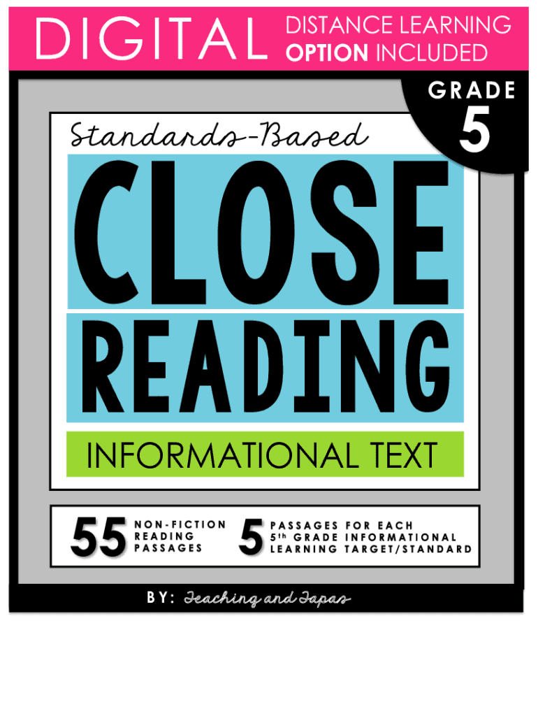 DIGITALDISTANCE LEARNING OPTION INCLUDED GRADECLOSE StandardsBasedREADING INFORMATIONAL TEXT Y : Teaching and Tapas5WHAT 55is in this resource?original reading passages included. Each close reading