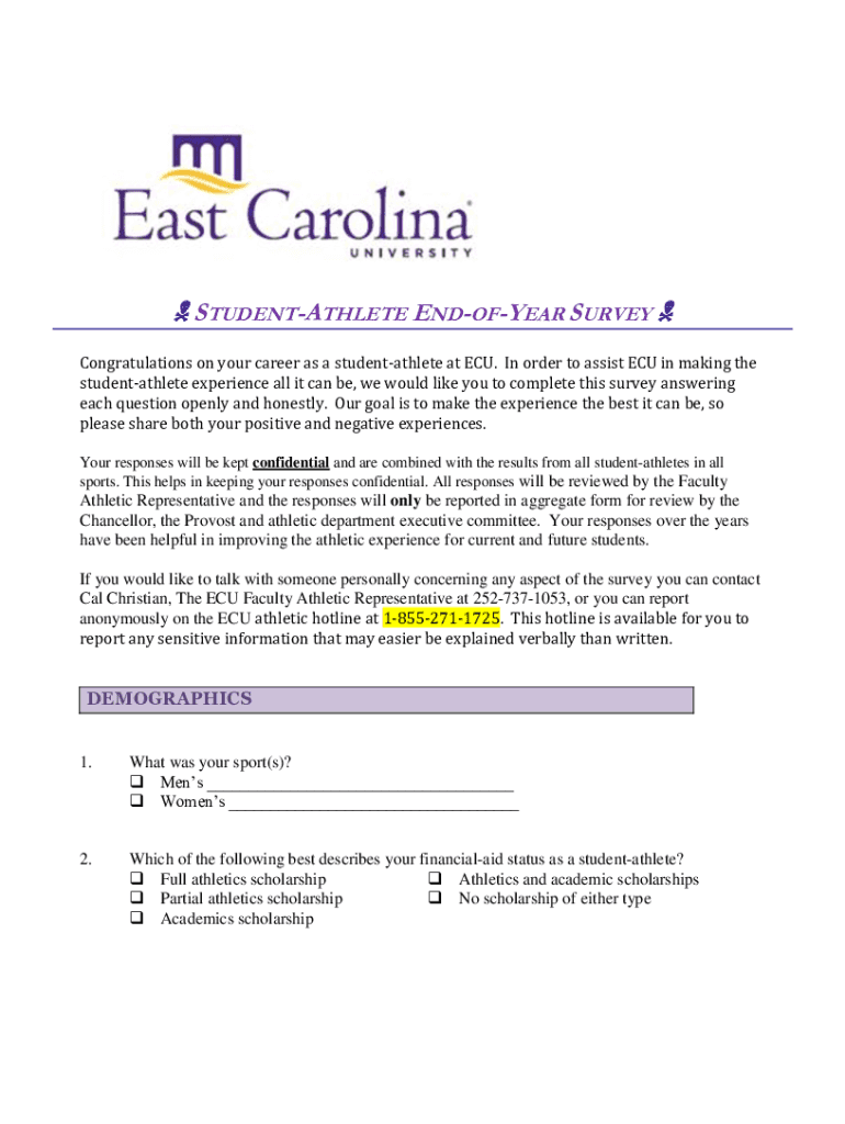 STUDENTATHLETE ENDEAR SURVEY Congratulations on your career as a student athlete at ECU. In order to assist ECU in making the student athlete experience all it can be, we would like you to complete
