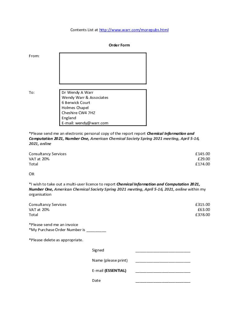Contents List at http://www.warr.com/morepubs.html Order Form From:To:Dr Wendy A War Wendy War & Associates 6 Berwick Court Holmes Chapel Cheshire CW4 7HZ England Email: Wendy warr.com Please send