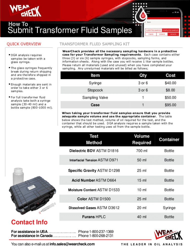 Recheck Oil Analysis Service New Poly pack (Soft Mailer)How To Page 1 of 2Submit Transformer Fluid Samples QUICK OVERVIEW DGA analysis requires samples be taken with a glass syringe. The glass syringes