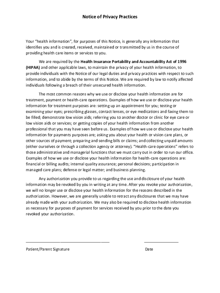 Notice of Privacy PracticesYour health information, for purposes of this Notice, is generally any information that identifies you and is created, received, maintained or transmitted by us in the course