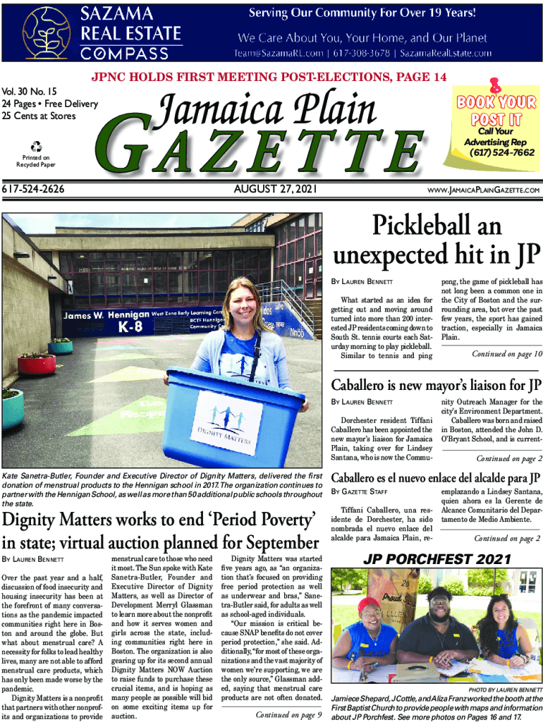 PNC HOLDS FIRST MEETING SELECTIONS, PAGE 14 Vol. 30 No. 15 24 Pages Free Delivery 25 Cents at StoresPrinted on Recycled Paper6175242626Jamaica PlainGazette AUGUST 27, 2021BOOK YOUR POST IT Call Your