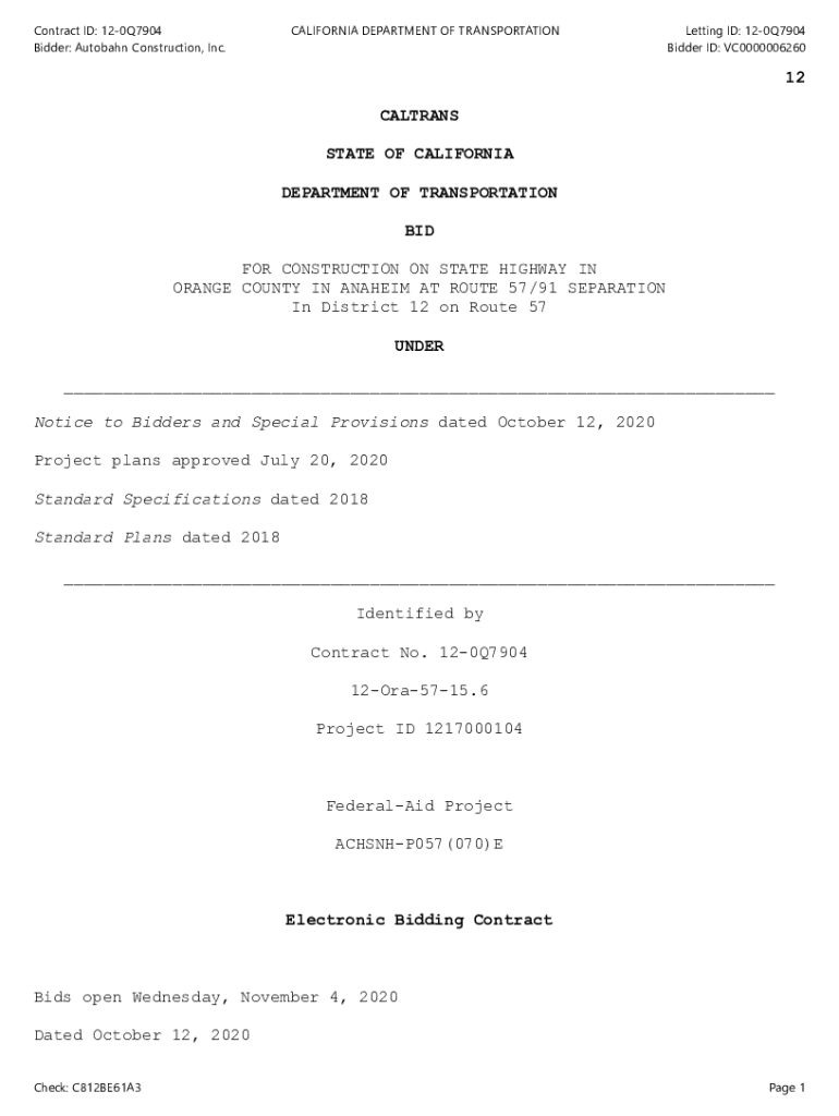 Contract ID: 120Q7904 Bidder: Autobahn Construction, Inc. CALIFORNIA DEPARTMENT OF TRANSPORTATIONLetting ID: 120Q7904 Bidder ID: VC000000626012 COLTRANE STATE OF CALIFORNIA DEPARTMENT OF TRANSPORTATION