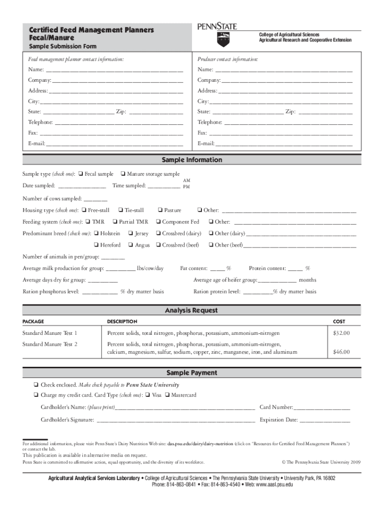 Certified Feed Management Planners Fecal/ManureCollege of Agricultural Sciences Agricultural Research and Cooperative Extension Sample Submission Form Feed management planner contact information:Producer